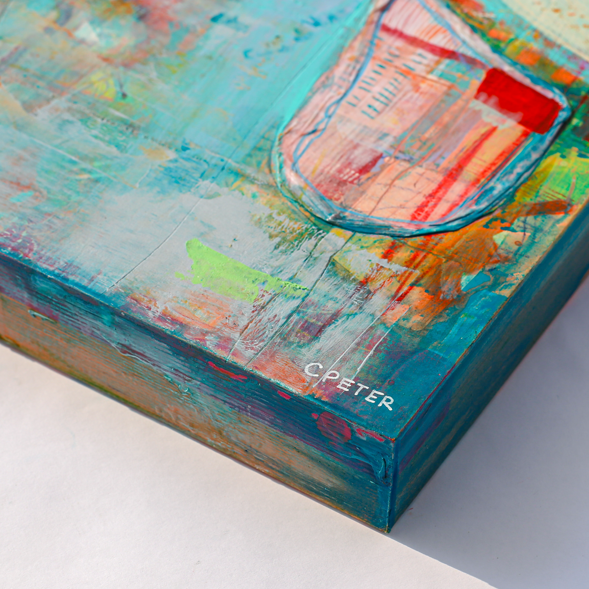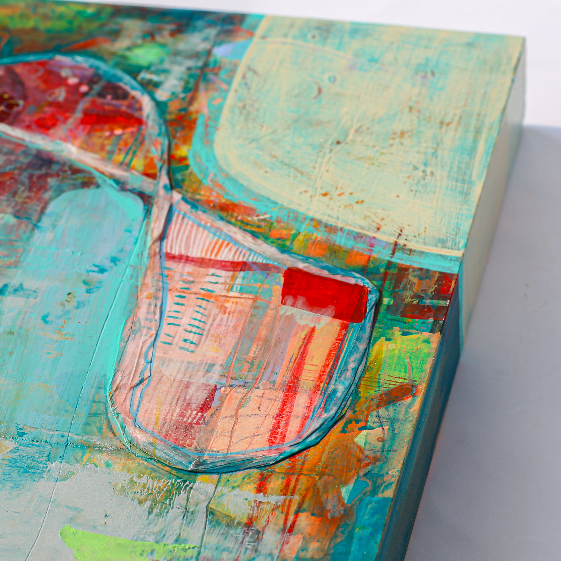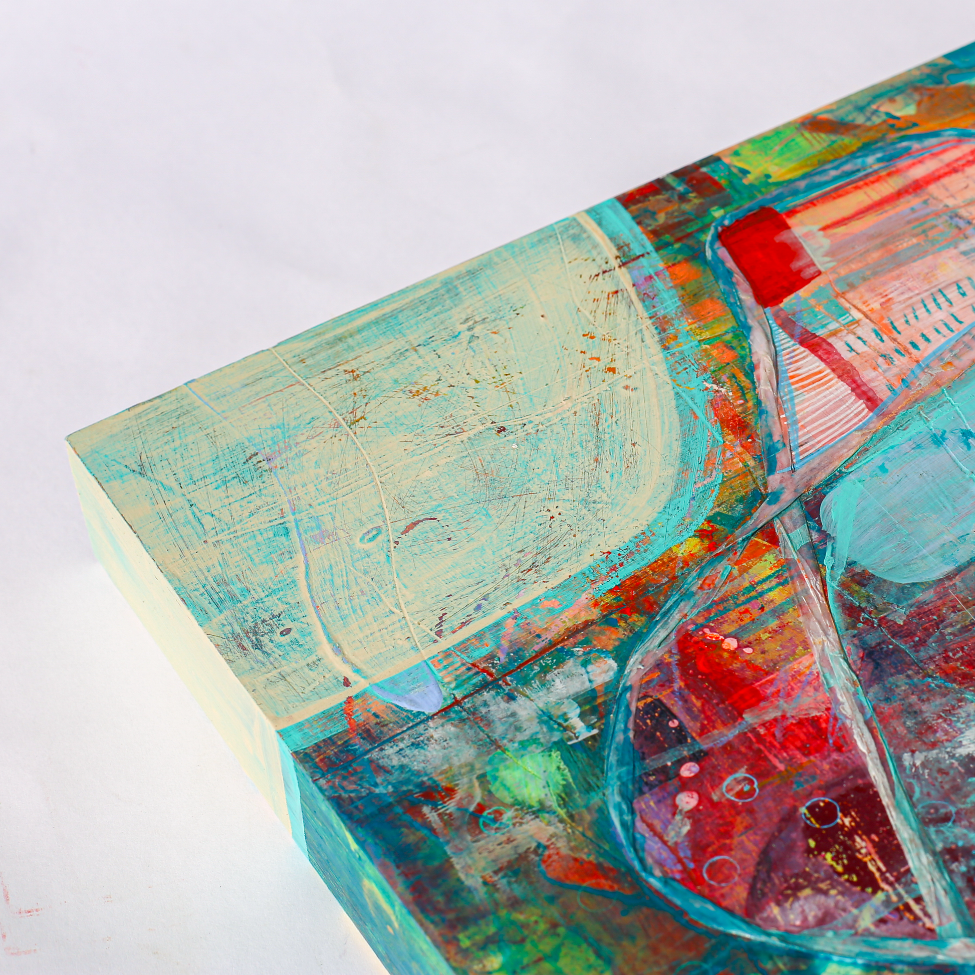 Original 12 x 12” mixed media painting on birch wood cradled panel. Created using professional grade acrylic paint, pencil, ink, and whatever mark making tools were within reach. This piece is varnished and ready to hang. Signed and titled on the back.